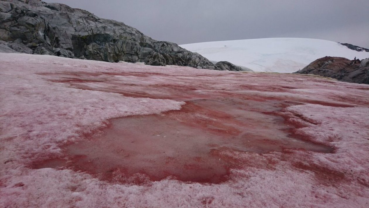 Spanische Forscher konnten nachweisen, dass dieses „rosa Schnee”, das durch mikroskopisch kleine Algen verursacht wird, als Faktor wirkt, der das Abschmelzen des Kontinents beschleunigt.
